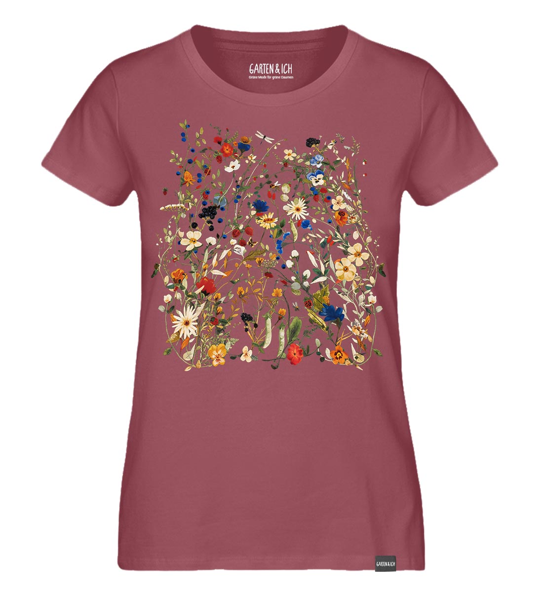 Dieses Damen Premium Organic Shirt bringt die Schönheit einer sommerlichen Blumenwiese direkt auf deinen Alltag. Das detailreiche Motiv zeigt eine Komposition aus zarten Wildblumen, Blüten, Kräutern und kleinen Naturdetails – liebevoll angeordnet wie eine handgepresste Blumensammlung. Ein Design, das Naturfreunde sofort anspricht und jeden Look aufblühen lässt.