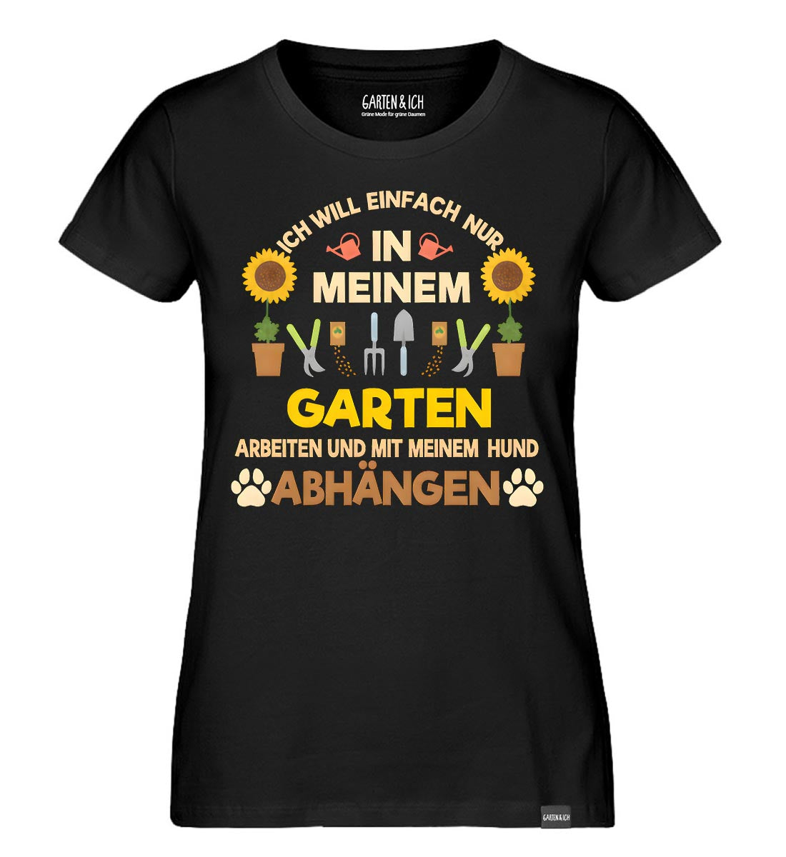 Für alle Gartenliebhaberinnen, die am liebsten zwischen Beeten, Blumen und ihrem Hund entspannen: Dieses Shirt bringt genau das auf den Punkt.